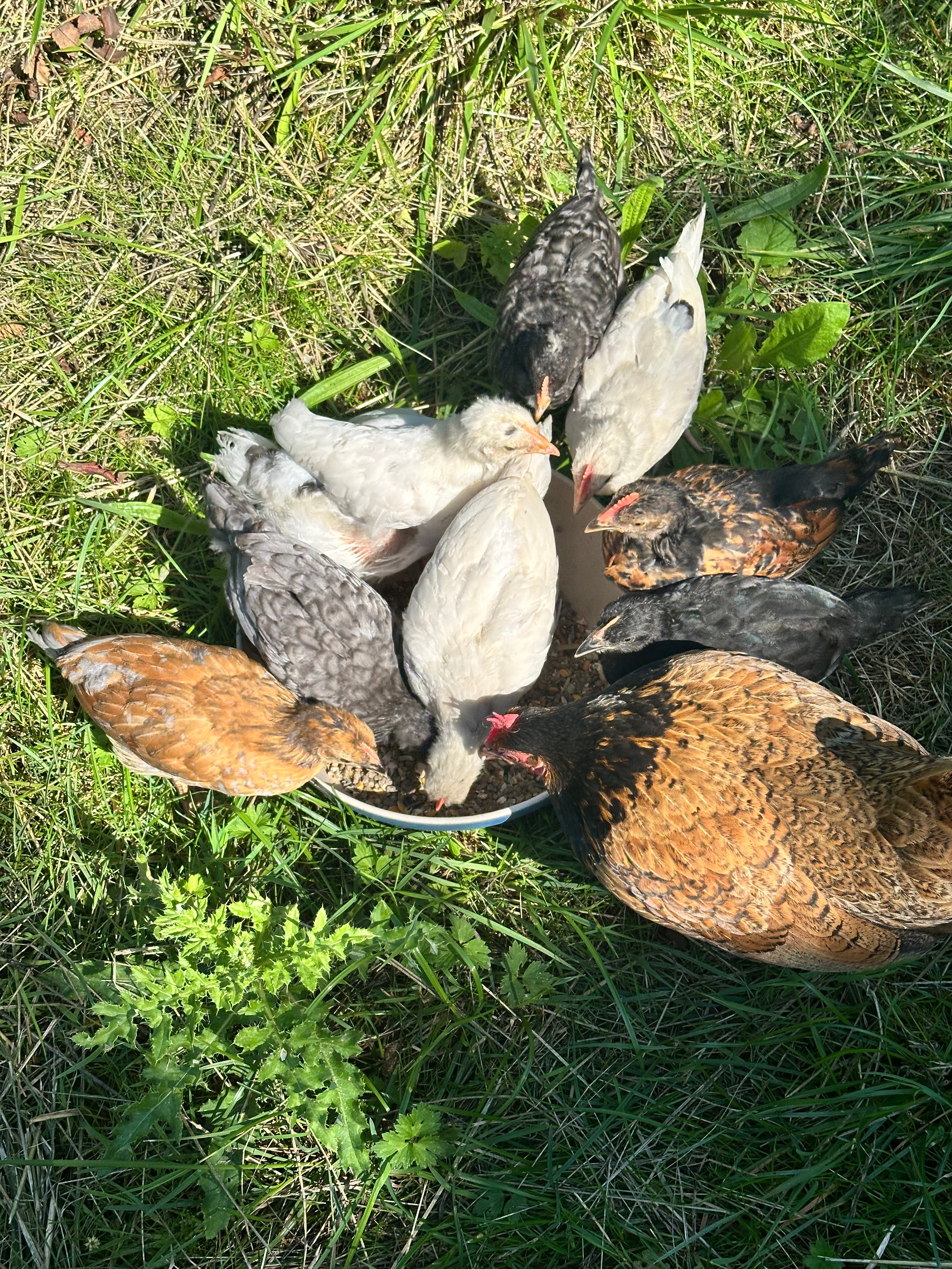 Læs mere om hønsenes historie herHønsene boede på gården, da jeg flyttede ind og de er desværre ikke så tamme endnu - men de er enormt hyggelige at kigge på, og hvis du har lidt tålmodighed, kan du fodre dem.